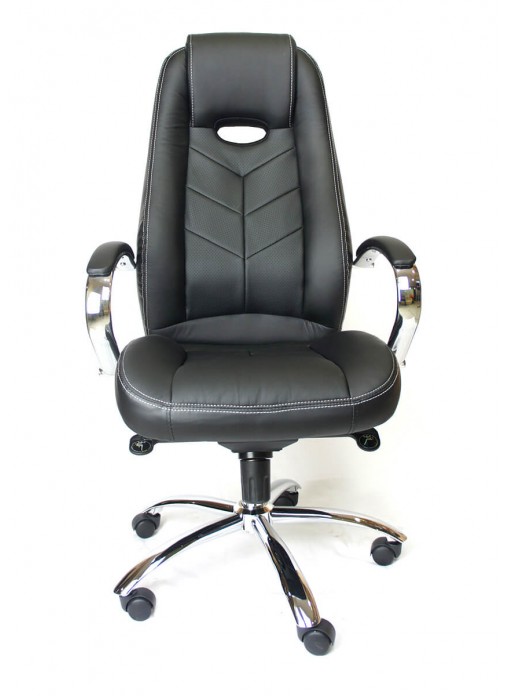 • Хромированные подлокотники с мягкими накладками из экокожи в цвет кресла;