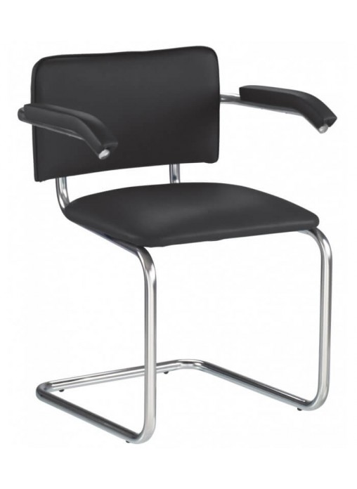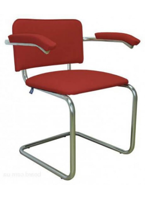 У данной модели конференц кресла есть подлокотники. Как и основание, они выполнены из хромированного металла. Мягкая накладка достаточно широкая, чтобы уютно разместить на ней руки. Слегка скошенный край подлокотников обеспечивает расслабленное положение рук.