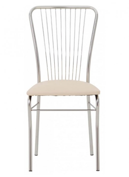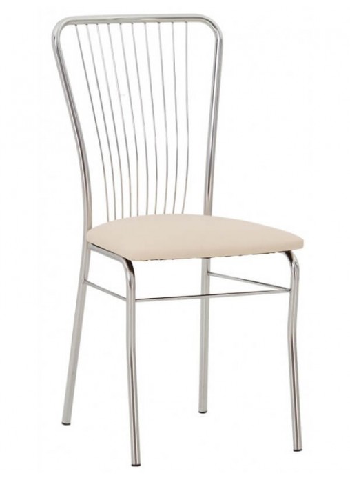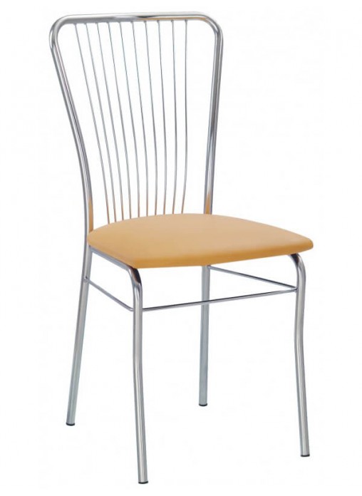 Спинка без обивки, представляет собой вертикальные металлические трубки, слегка изогнутые под форму спины сидящего. Сиденье мягкое, квадратной формы, обтянуто высококачественной искусственной кожей, имитирующим поверхность натуральной кожи. Цвет обивки можно выбрать из предлагаемой оттеночной палитры.